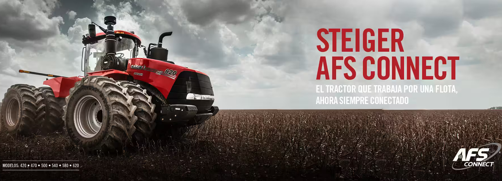 Los tractores Case IH Steiger AFS Connect ahora forman parte de una nueva generación de productos que tienen la agricultura digital en su ADN, combinando tecnología, fuerza y performance para un alto rendimiento en el campo. Líderes en la categoría articulada, los tractores 4X4 cuentan con un diseño agronómico y configuraciones de ruedas personalizadas, lo que los hace ideales para operaciones de labores extremadamente pesadas como la siembra y la labranza. Completamente conectados, ofrecen características que permiten la visualización remota y el soporte a distancia, además de una nueva cabina diseñada para la máxima comodidad del operador.